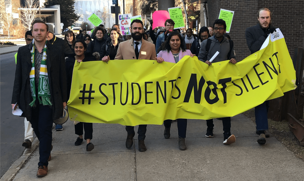 Akanksha Bhatnagar, SU President 2019-2020, leading a protest for #StudentsNotSilent